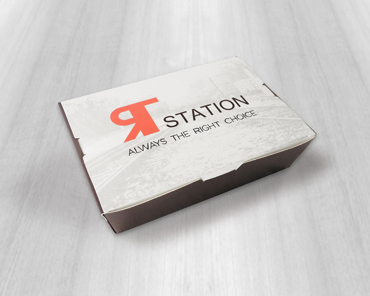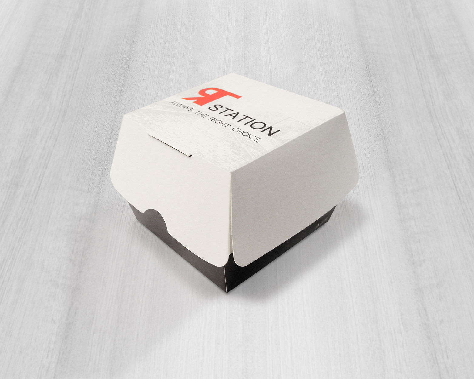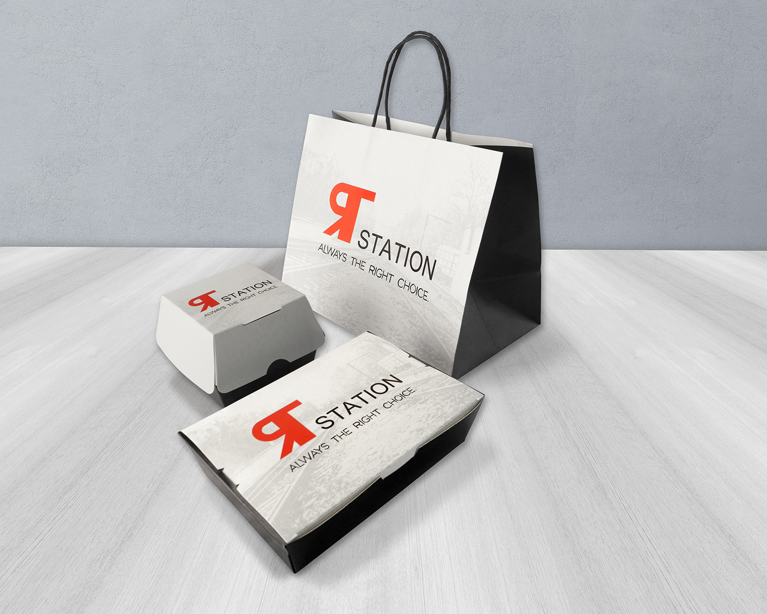 RT Station needed a set of food package designs to enhance brand awareness and differentiate its products from competitors. The set of package designs is consistent with its brand style. The package designs are including a paper bag, a paper box, and a burger box.