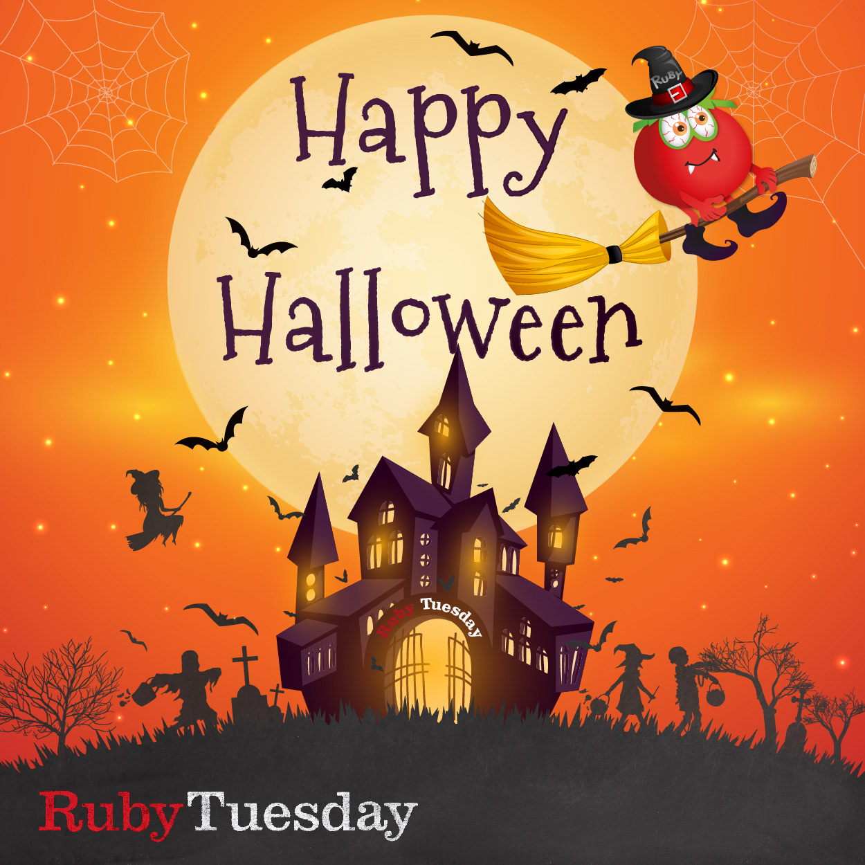 ♥ Happy Halloween (Ruby dresses in warlock costume and is flying on top of Ruby Tuesday haunted castle with a magic broom)