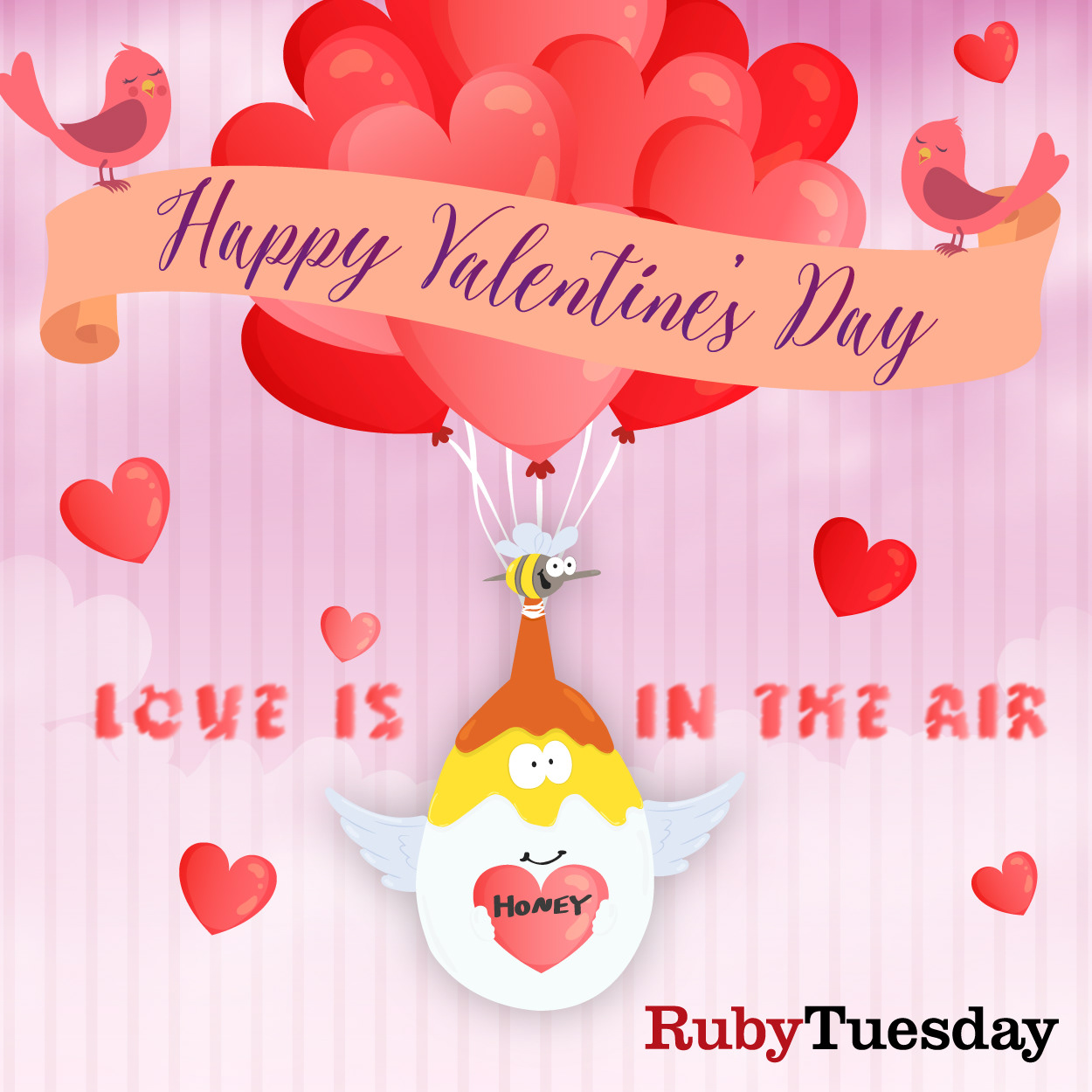 ♥ Happy Valentine's Day (Honey is flying with its angel wings and heart-shaped balloons, to celebrate Happy Valentine's Day)